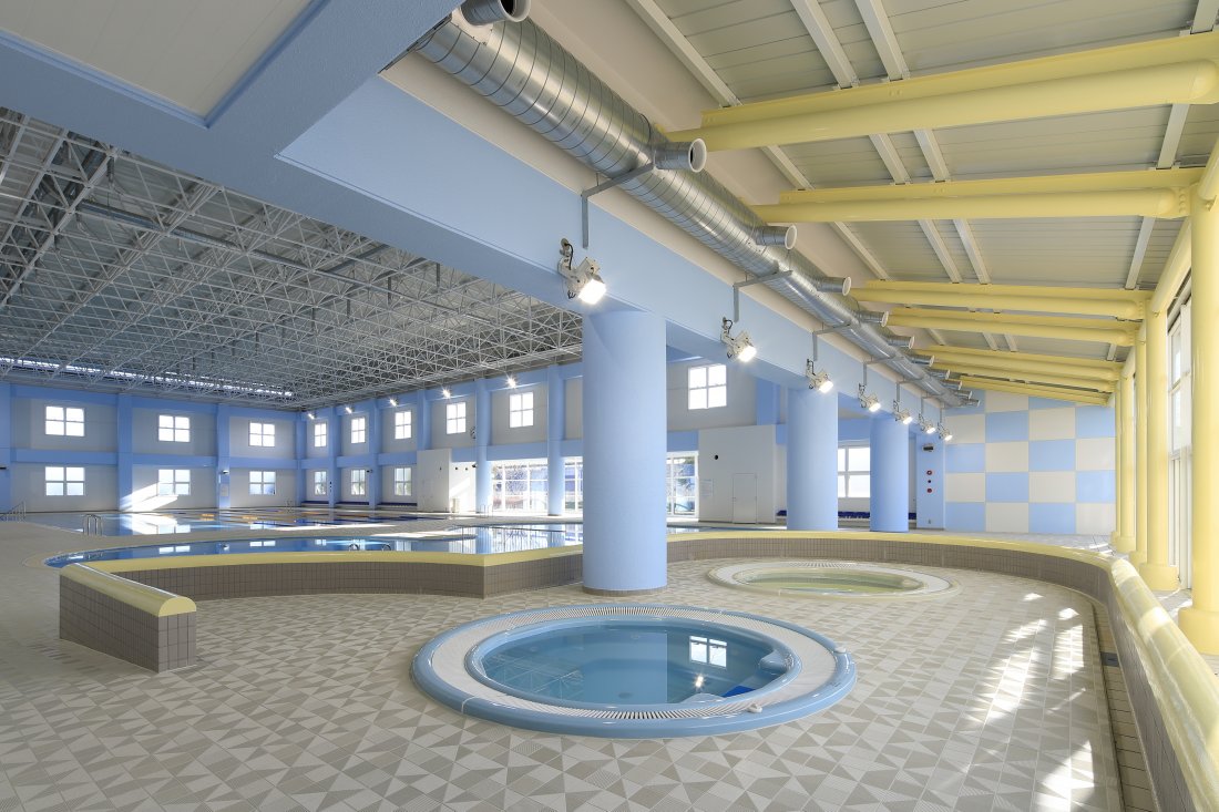 25m×8コースのメインプールをはじめ、水深が調節される子ども用プール、水中歩行やリハビリに適したアクアケアプール、そしてジャグジーも完備されていて、子どもから大人まで幅広く楽しめる施設となっています。