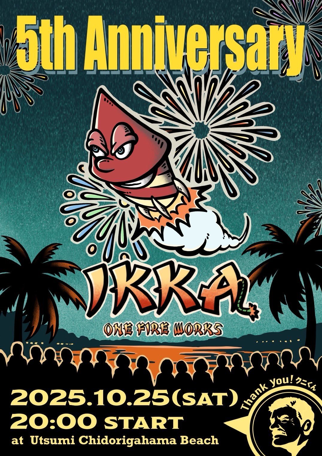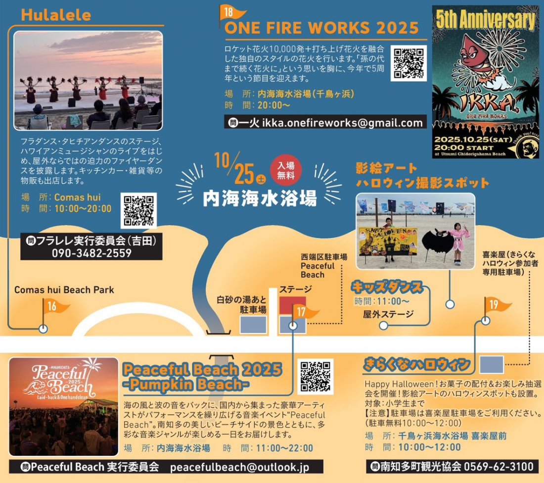 一火ONE FIRE WORKS2025 5thAnniversary (いっか) 住所 南知多町内海浜岡部 駐車場 有(公共交通機関の利用を推奨) 公式サイト https://peaceful-beach.com/ Instagram ikka_onefireworks |