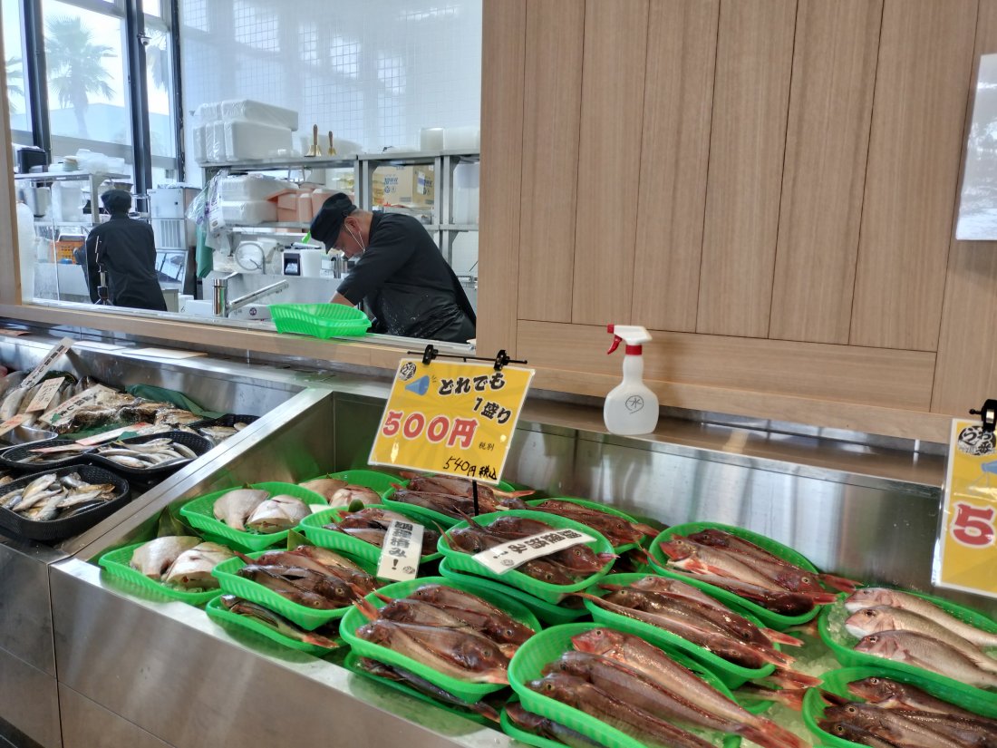 売り場には鮮魚、刺身、寿司、干物、切り身など様々な魚が並んでいました。