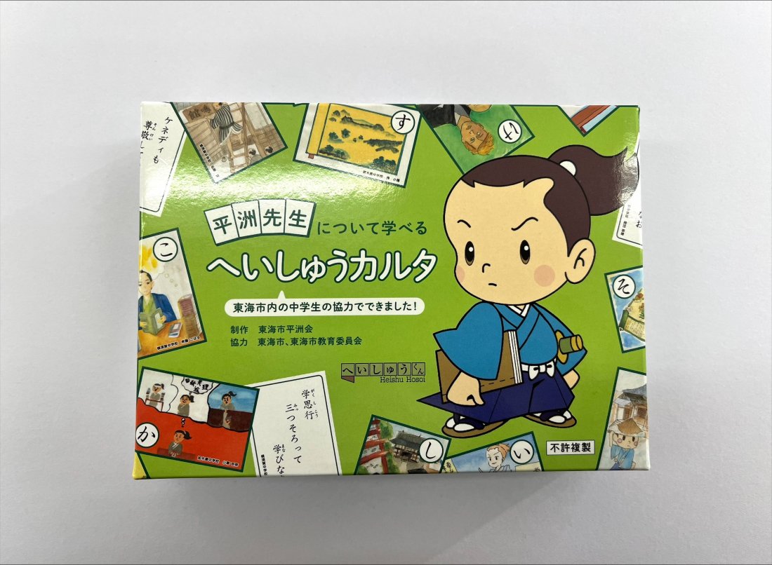 東海市立平洲記念館・郷土資料館の開館50周年を記念して東海市平洲会によりつくられた東海市が誇る偉人「細井平洲(ほそい・へいしゅう)」の魅力を伝えるご当地カルタ。江戸時代の儒学者である平洲先生の“生い立ち”や“教え”などを盛り込んだ内容で、読み札、絵札は公募で市内の中学生から選ばれました。へいしゅうカルタは、東海市立平洲記念館で購入できます。(2025年2月末の贈呈式後、3月より販売開始予定)