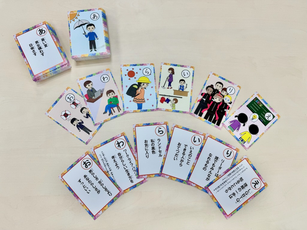 男女共同参画について、子どもたちにわかりやすく内容を伝えるとともに、楽しみながら学んでもらうためつくられたカルタ。これまでに集まった”性別にかかわらず自分らしさを大切にする”ことを伝える標語を基に、半田市内の高校生・大学生との協働で読み札、絵札を制作しました。市内の放課後児童クラブや児童センターに貸出され、男女共同参画について学びながら遊べるかるたになっています。