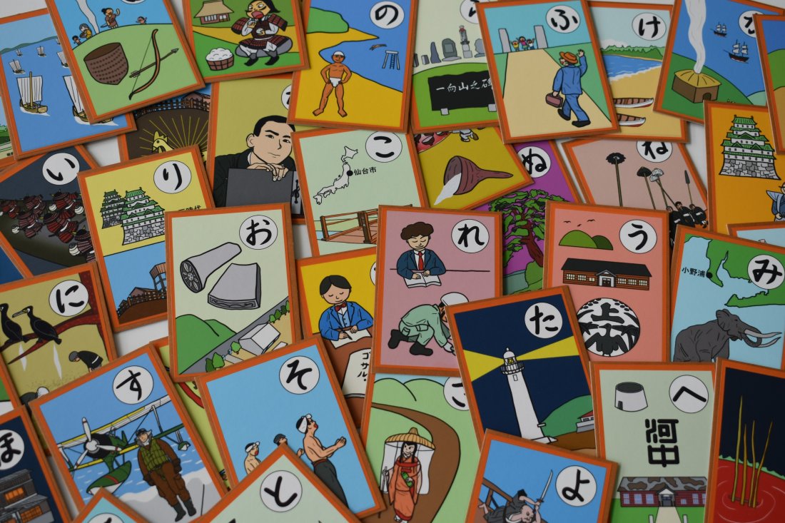 郷土の文化や歴史、祭りや言い伝えを遊びながら自然に学べるご当地カルタ。