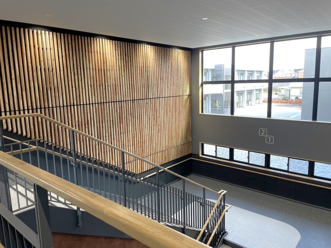 校舎内には木材が多く使用されていて、温かい雰囲気の空間が広がっています。