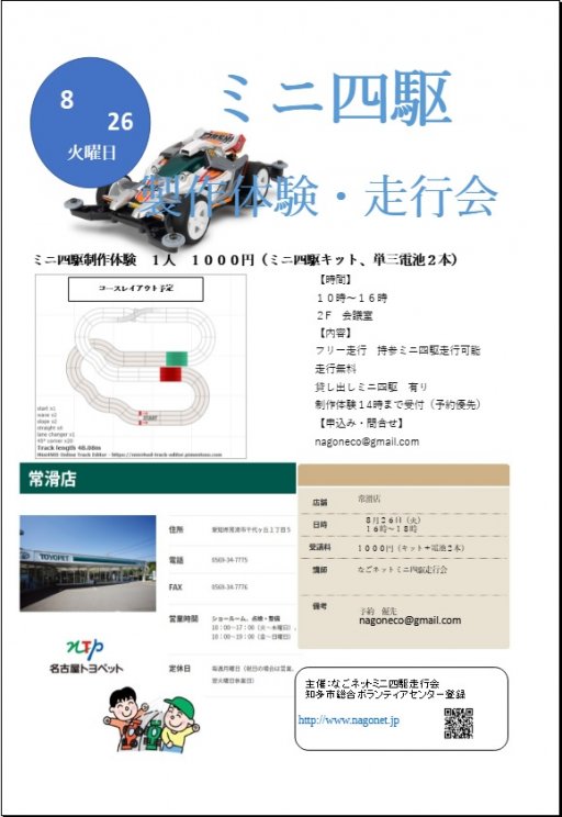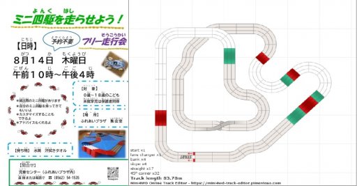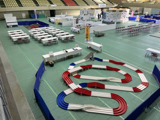 メディアス体育館 卓球・剣道場 9時30分~15時30分 参加費無料 ミニ四駆フリー走行会 貸し出しミニ四駆 有り 3周走行毎に返却 自作ミニ四駆持ち込み可