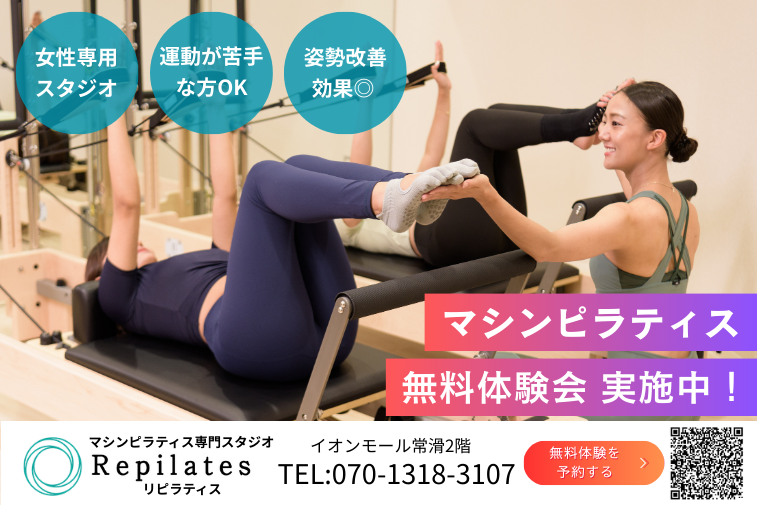 Repilates (リピラティス) 住所 常滑市りんくう町2-20-3 イオンモール常滑2F 営業時間 10:00~21:00 定休日 イオンモール常滑に準ずる 駐車場 有 公式サイト https://repilates.jp/studio/ |