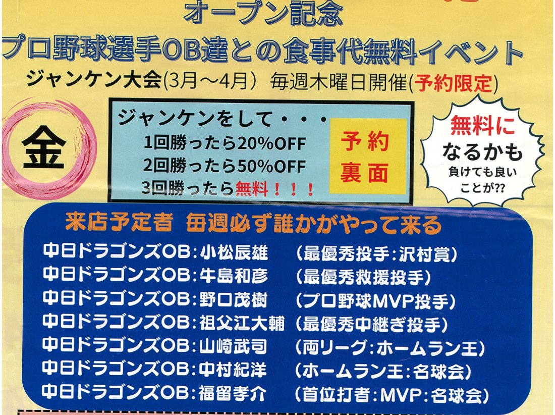 【続報】中日ドラゴンズOBがやってくる!全席個室の焼肉「まる金」が東海市に3/5(木)オープン