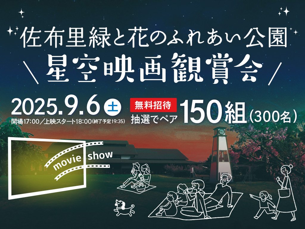 佐布里緑と花のふれあい公園 星空映画観賞会 住所 知多市佐布里台3-101 電話 0562-54-2911(緑と花のふれあい公園内 梅の館 ※月曜休) 日程 2025年9月6日(土) 時間 17:00開場/18:00上映開始(19:35終了予定) 駐車場 有(園内4か所に無料駐車場300台分) 公式サイト https://www.sourifureai.com/ |