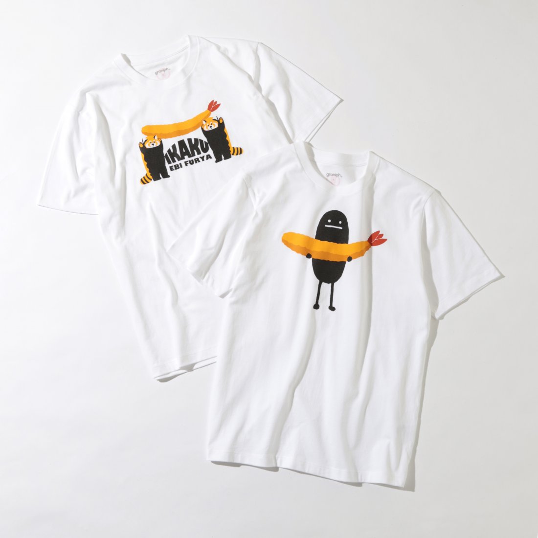 人気オリジナルキャラクター「ビューティフルシャドー」と「イカク」がエビフライを持ち上げるグラフィックがユニークな「15thアニバーサリーTシャツ(各3,500円)」も発売されます。
