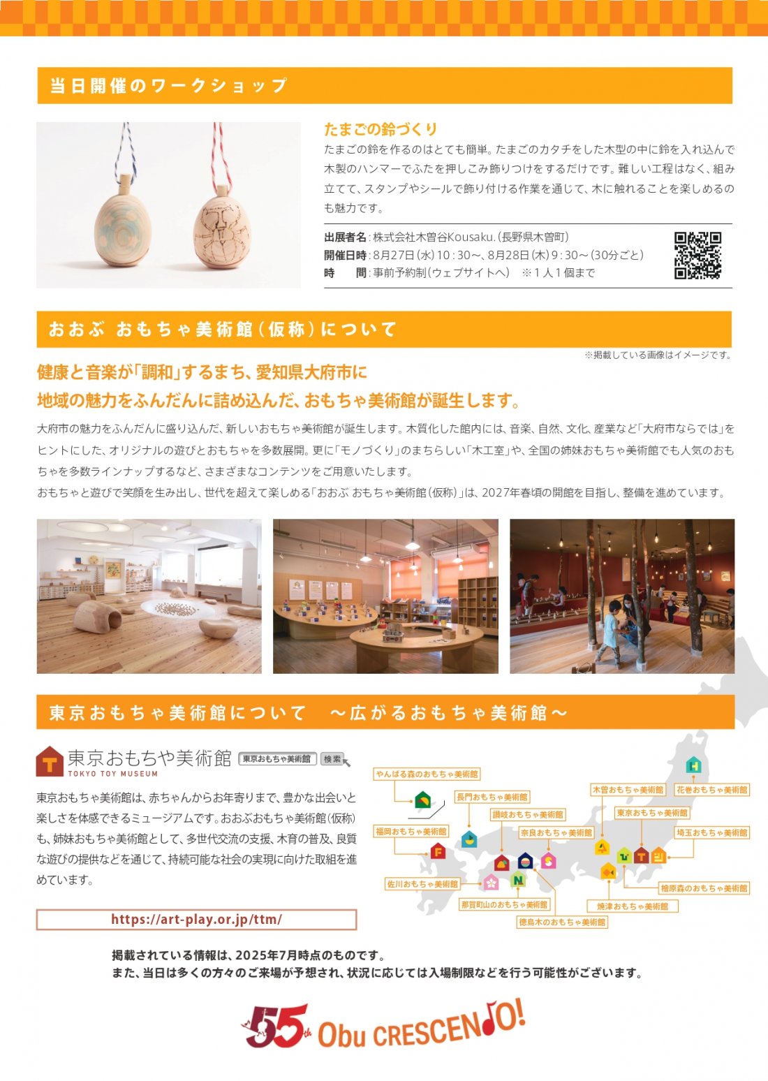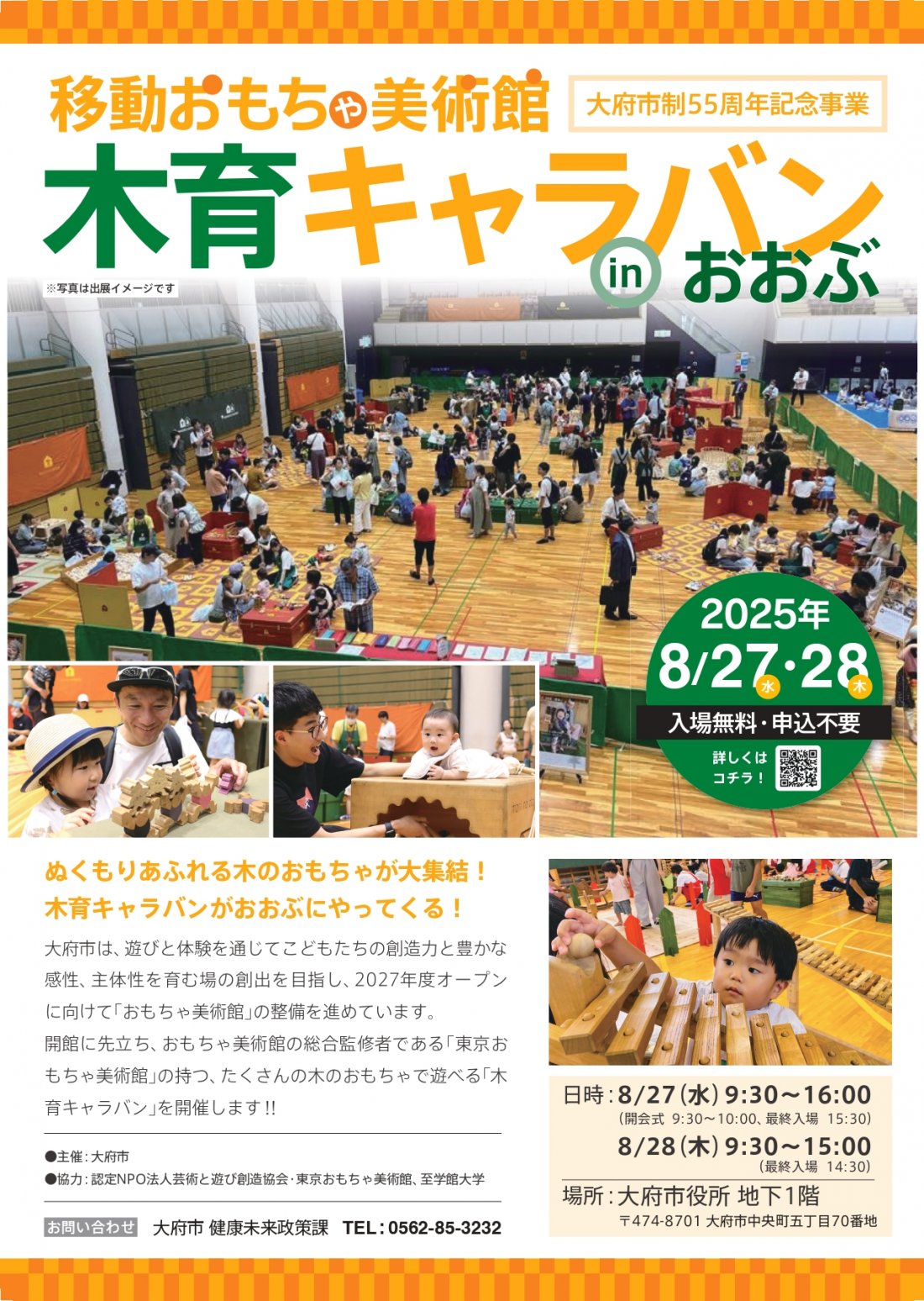 木育キャラバン in おおぶ (もくいくキャラバン イン おおぶ) 住所 大府市中央町5-70 電話 0562-85-3232(大府市役所 健康未来部 健康未来政策課) 駐車場 有(近隣にコインパーキング有) 公式サイト https://www.city.obu.aichi.jp/55th/1031997/1036227.html Instagram obu_city_official |