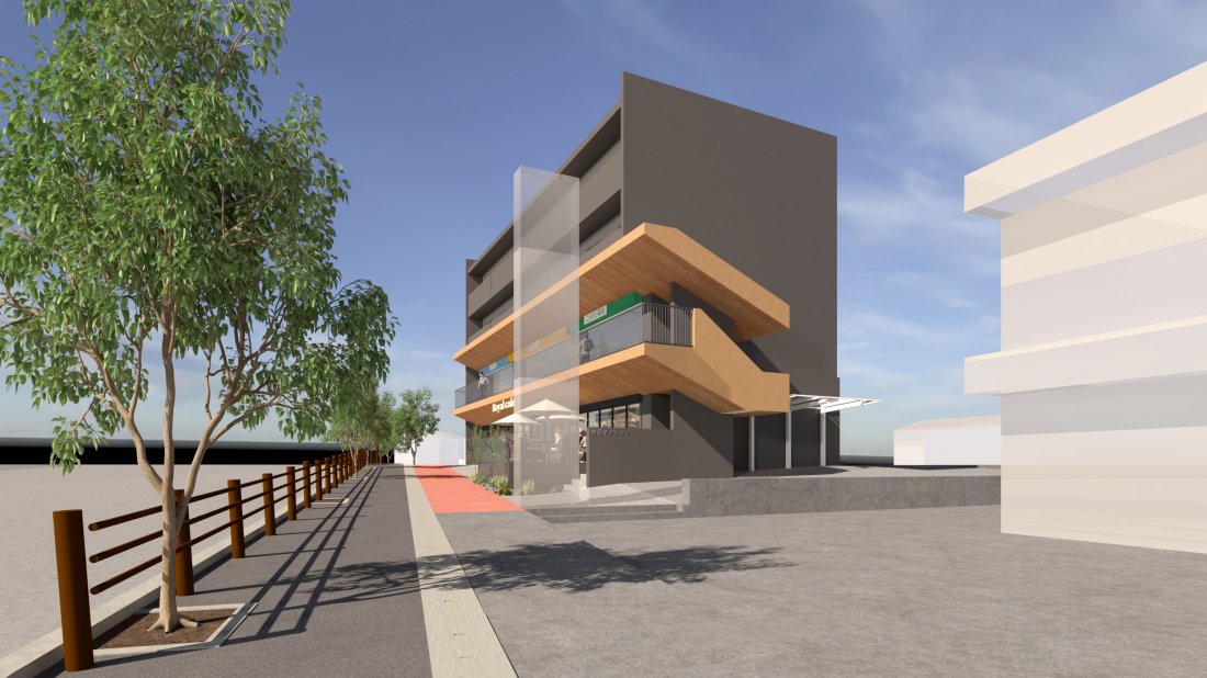 こちらのビルは1階と2階に4つのテナントが入り、3、4階以上は居住区となるそうで、現在はその4区画のテナント入居者も募集中とのこと。