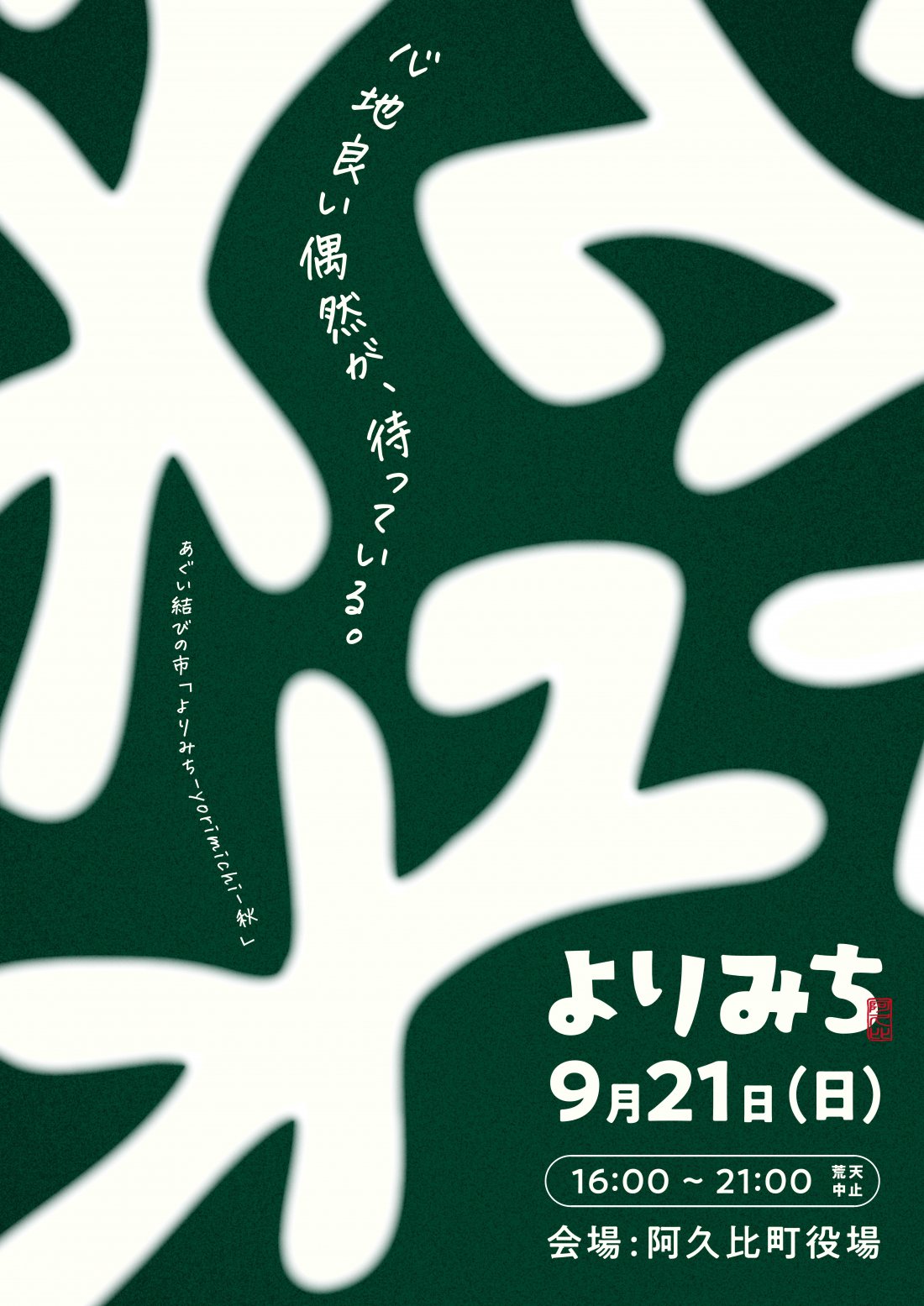 あぐい結びの市「よりみち-yorimichi-秋」 住所 阿久比町卯坂殿越50 電話 0569-48-1111(阿久比町役場 企画広報課 企画政策係) Instagram yorimichi.agu1/ |