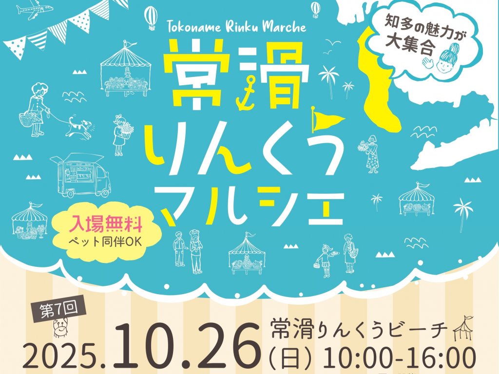 常滑市・りんくうビーチの北芝生広場で「第7回 常滑りんくうマルシェ」が10月26日(日)10:00~16:00に開催されます。※雨天開催