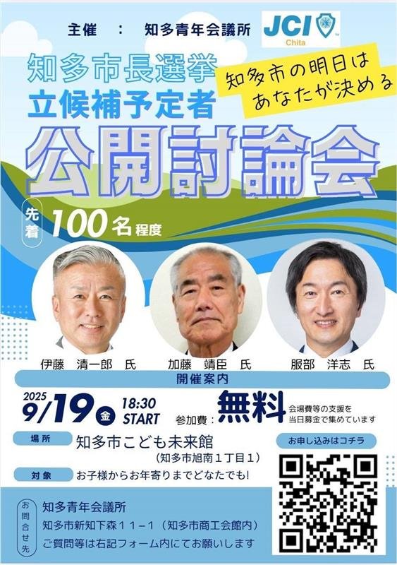 知多半島の一部ケーブルテレビ局では、「知多市長選挙立候補予定者 公開討論会」を放送します。