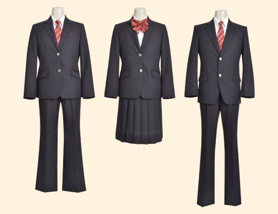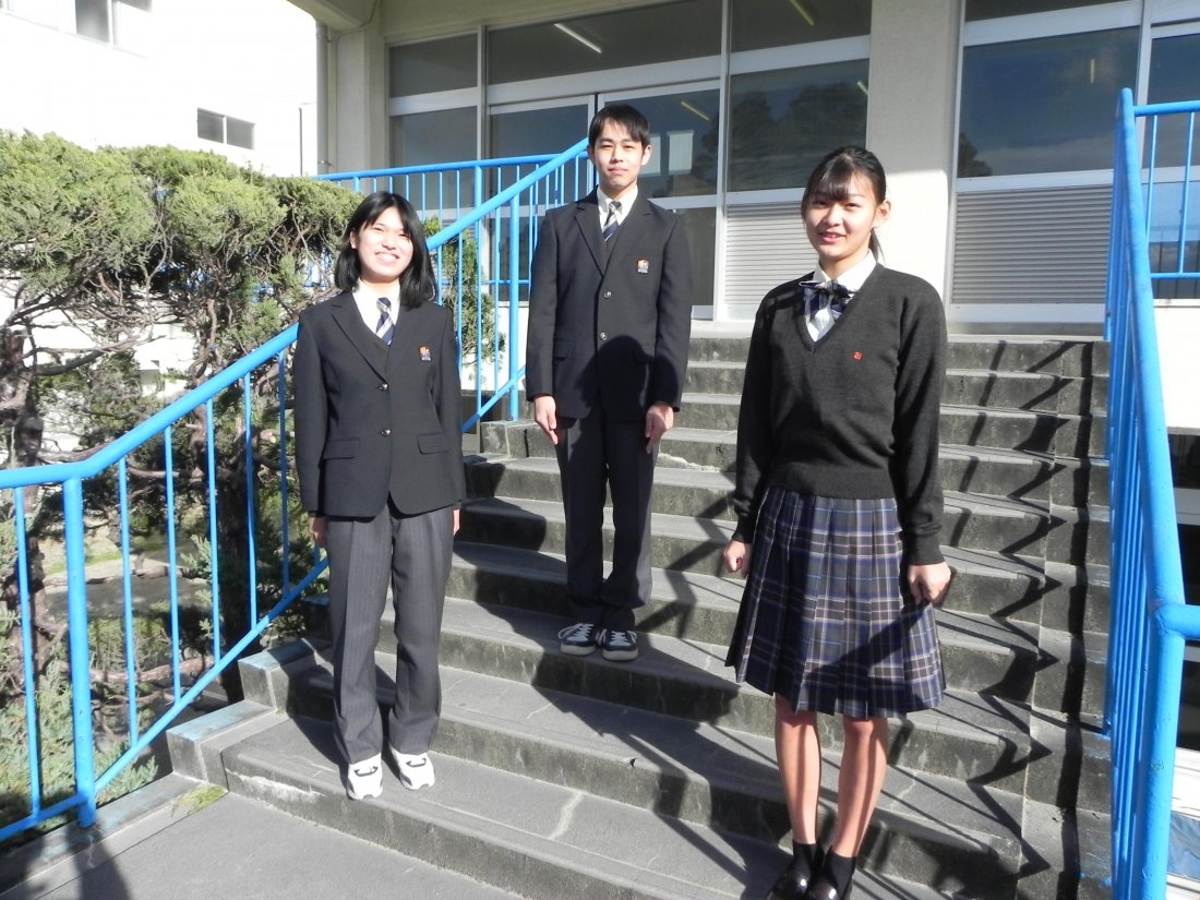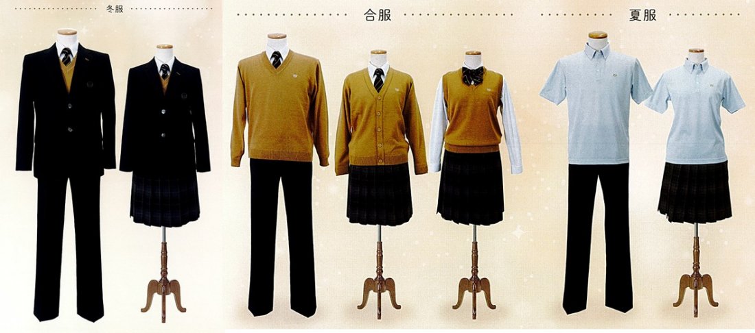 ![]() ![]() 制服 男子は学校指定のブレザーとズボン、女子は学校指定のブレザーとスカートです。