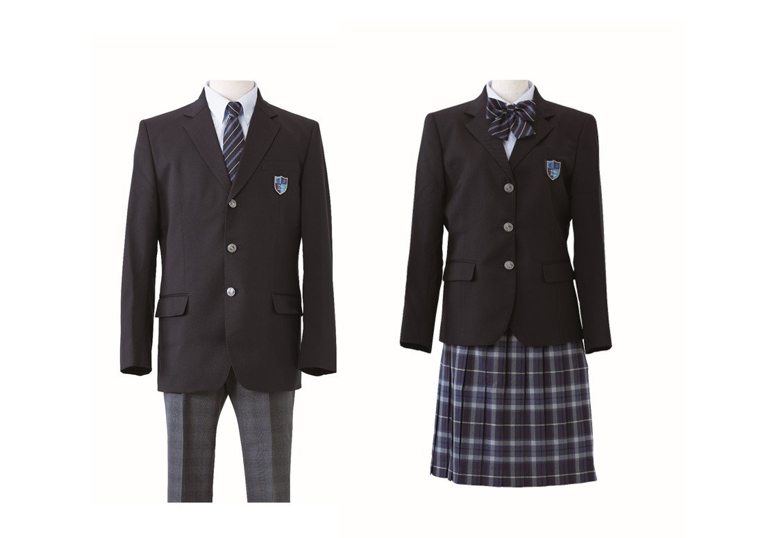 ![]() 深い濃紺で理知的な印象を与え、伝統と品格を感じさせるスーツ型の制服を新たに採用。素材にこだわり、上質なウールですが家庭で洗えるウォッシャブル機能と汚れ防止機能がついています。耐久性と着心地に優れたジャケットとボトムで、ニットベスト、カーディガン、カッターシャツ、ポロシャツもあり、生徒が自由に着こなしを楽しめるようになっています。ネクタイ、ボタン、ジャケットの内側のオリジナルネームには、在校生の意見を取り入れました。またスーツ型のほかにも従来の詰襟やセーラー服もあります。