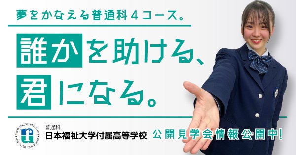 日本福祉大学付属高等学校 (にほんふくしだいがくふぞくこうとうがっこう) 特色 全日制普通科で、2年次からの4コース制による豊かな学びを通して、確かな進路を実現しています。日本福祉大学への付属推薦制度があるほか、国公立大学を含めて多様な進路に挑戦できます。またフィリピン・台湾・カンボジアとの国際探究活動や部活動も盛んで、とくに野球部・サッカー部・陸上部・和太鼓部・吹奏楽部という5つの強化指定部活を中心に、日々成長できる環境が整っています。 制服 ![]() ヒロミチナカノデザインの制服は、バリエーションの豊富さと自由自在なコーディネートが魅力。女子はスラックスが選択できるほか、男女ともに夏服にポロシャツがあります。特に女子のポロシャツは着痩せ効果&スタイルをよく見せる機能的なデザインが特徴で、かつ着心地にこだわった生地も好評。 注目ポイント 生徒たちの自主性を尊重する校風と「未来社会を担う自律したリーダーに」という学校方針は、充実した3年間を送るにふさわしい環境です。また勉学や特別活動の両面において、それぞれが活躍できる場と果たすべき役割を持ち、「誰かのために」というマインドを重要視しているのもポイントです。優しく穏やかでありながら、明るく活動的であれという校風のもと、のびのびと学校生活を送ることができます。