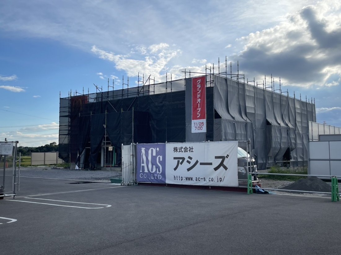 名鉄巽ケ丘駅から徒歩3分ほど、阿久比町白沢の「カネスエ 阿久比店」の駐車場敷地内に建設中のマクドナルドに関する最新情報です。