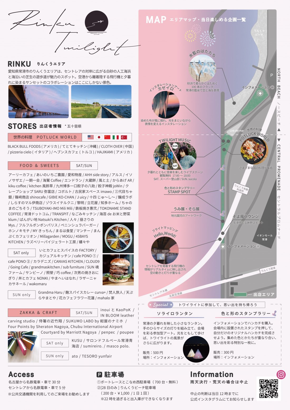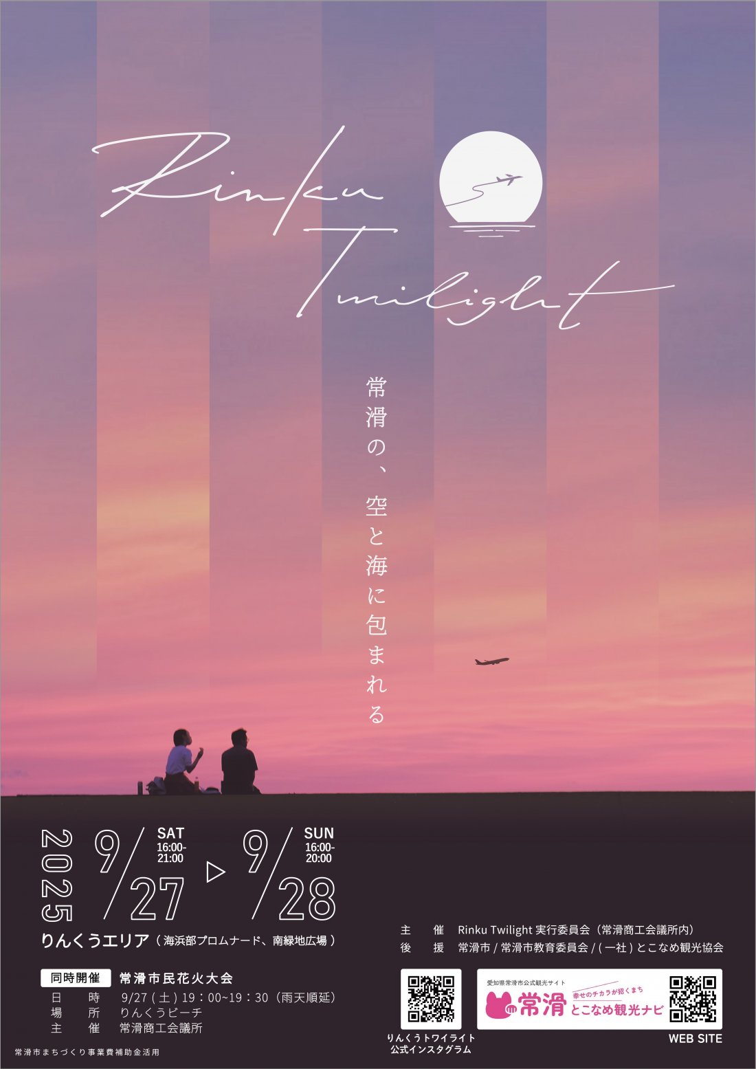 Rinku Twilight 2025 (りんくうトワイライト) 住所 常滑市りんくう町2(りんくうビーチ) お問い合わせ 0569-34-3200(Rinku Twilight 実行委員会※常滑商工会議所内) 駐車場 有(りんくうビーチ駐車場、ボートレースとこなめ西駐車場 ※詳しくはこちら)