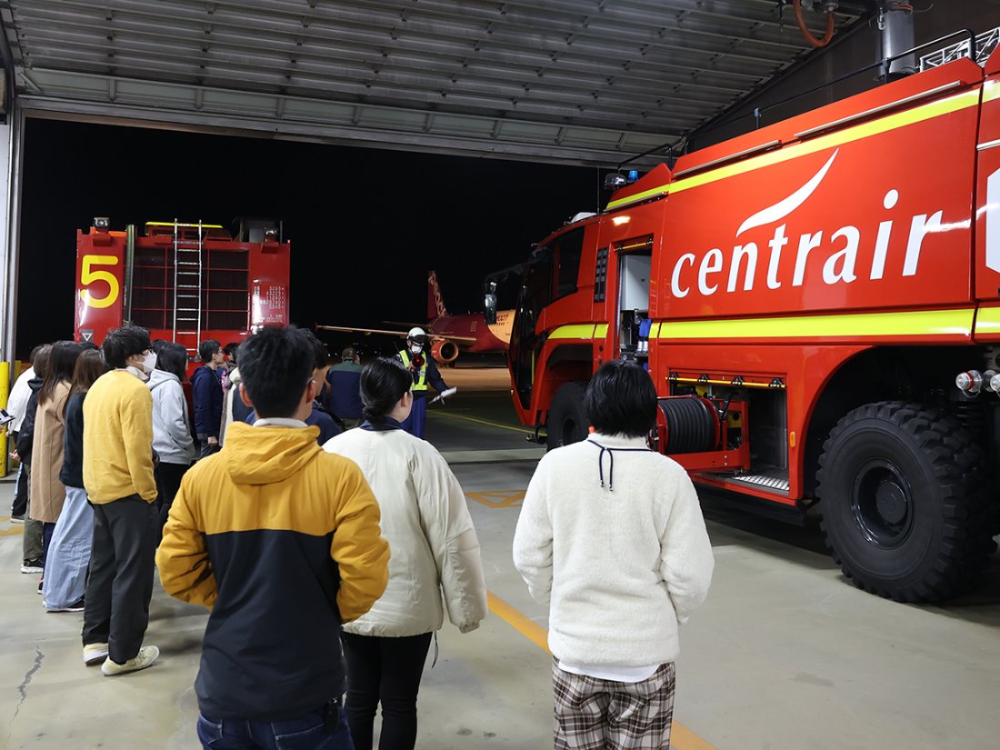 いつもは搭乗時に航空機機内からでしか近くで見ることができない「滑走路」へ入ったり、航空機の航行を支援する「航空灯火」のライトアップ、夜間の滑走路で行われる点検作業を間近で見たり、さらに空港消防所で空港用化学消防車などの消防車両などの見学もできます。