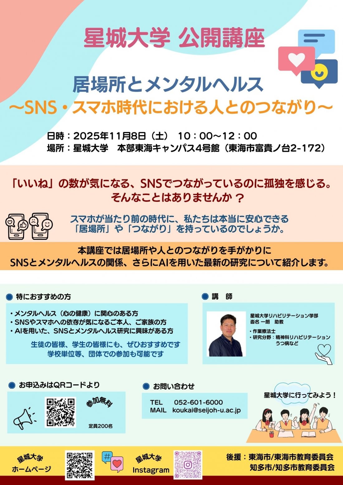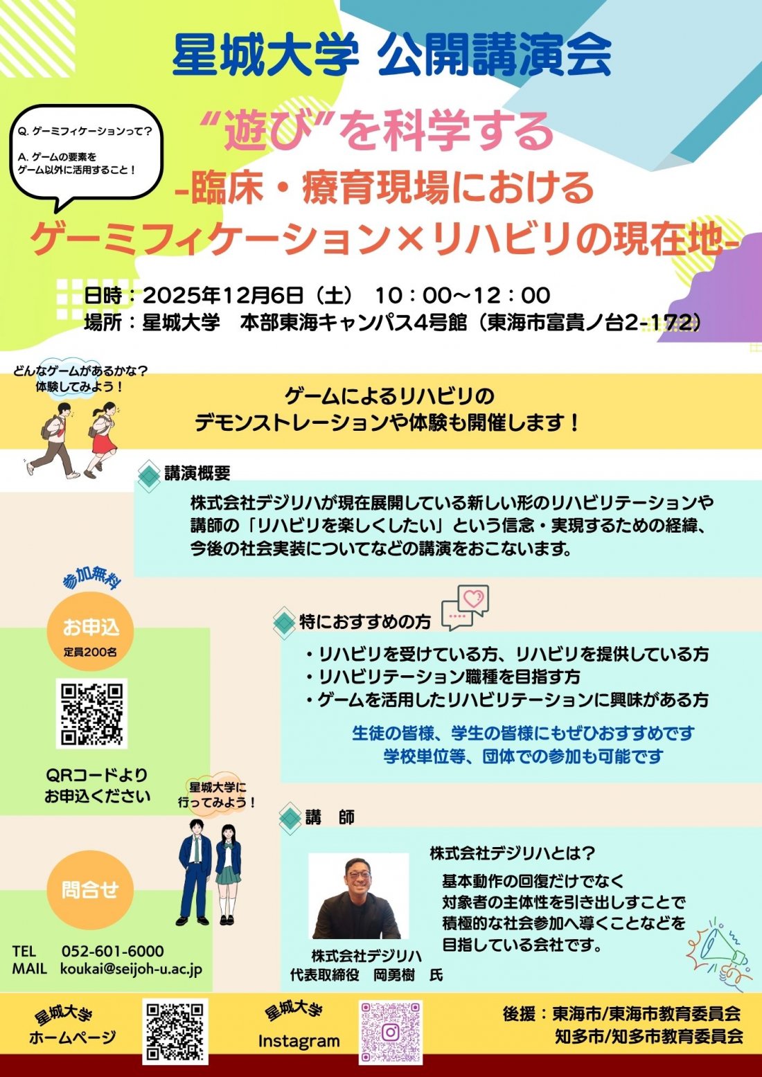 今回は11月・12月に「星城大学 東海キャンパス」で開催される公開講座を紹介します。どちらも無料(事前申込制)で参加可能です。