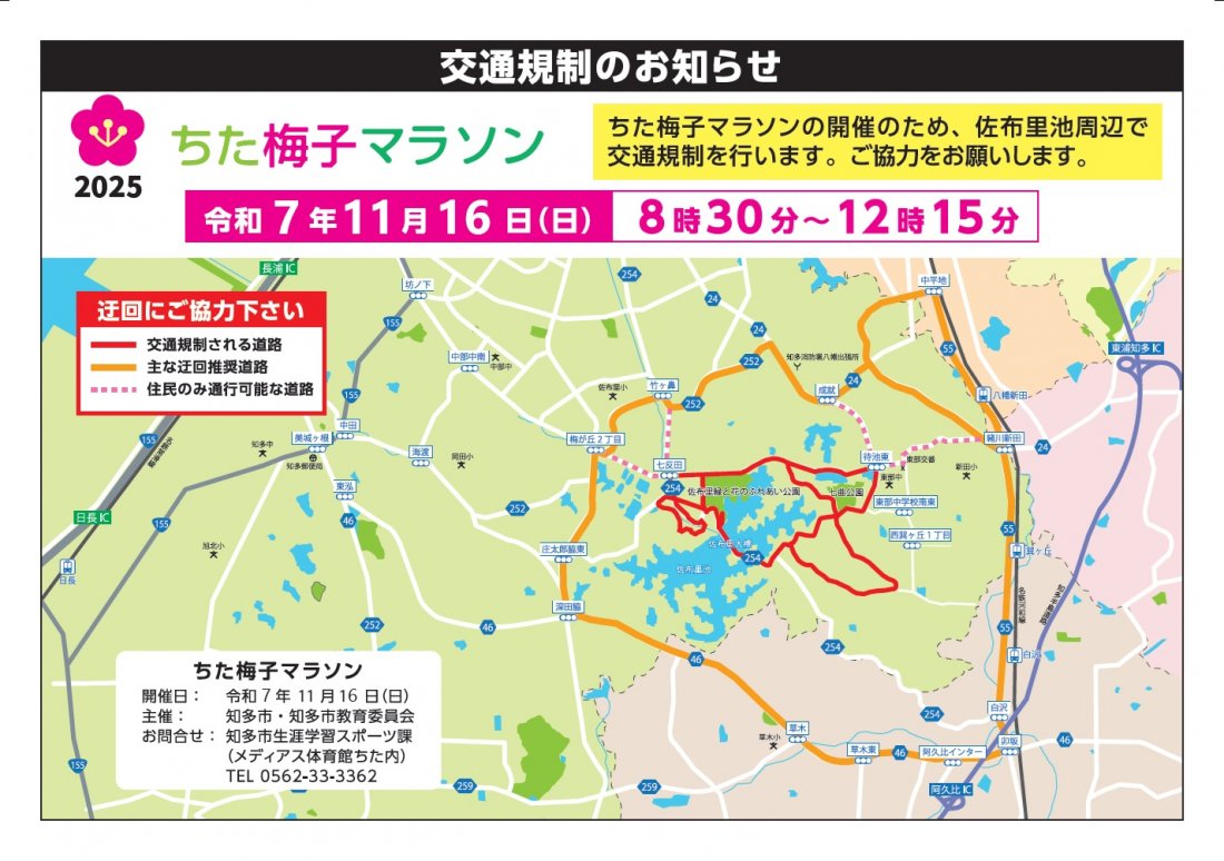 ちた梅子マラソン 住所 知多市佐布里緑と花のふれあい公園及び佐布里池周辺 電話 0562-33-3362(ちた梅子マラソン実行委員会事務局) 公式サイト https://chita-umeko-marathon.jp/ |