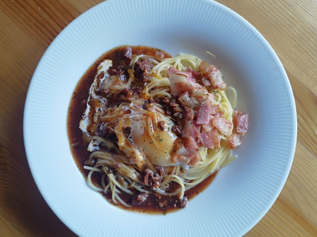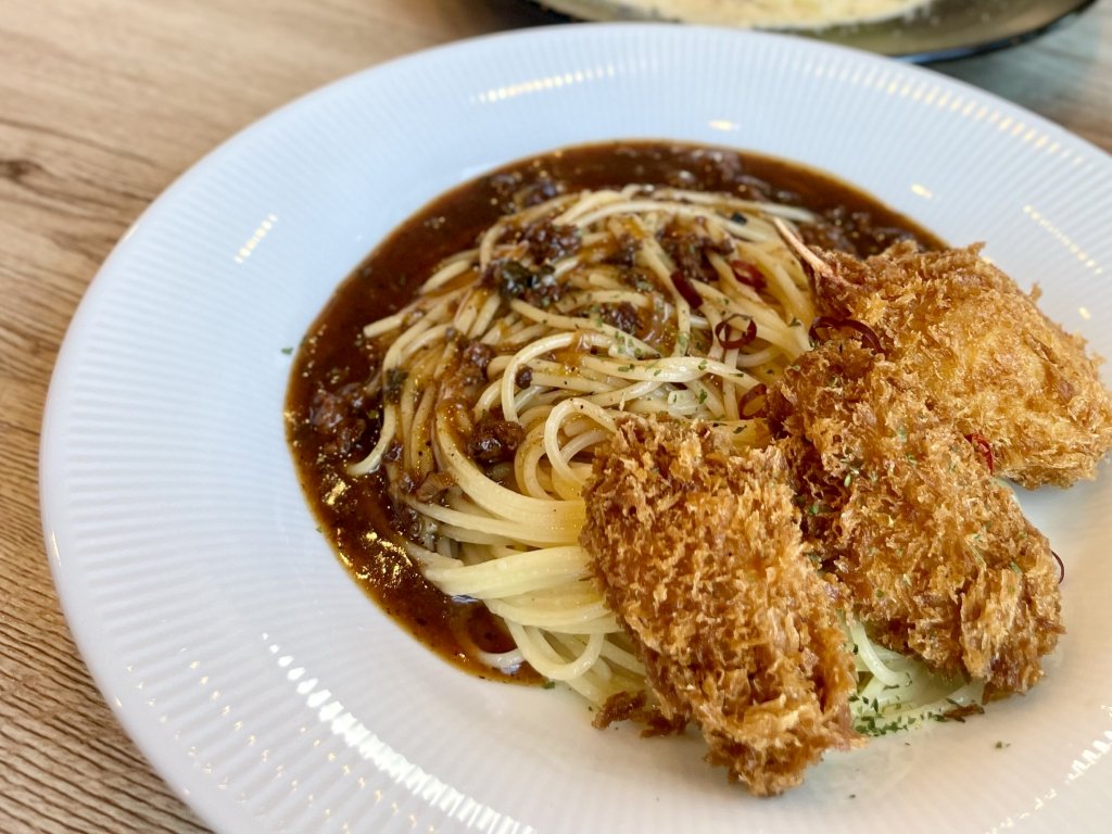 ピリッとしたスパイスの辛味が名古屋名物のあんかけスパを彷彿とさせつつ、ペペロンチーノのガーリックがさらに食欲をそそります。