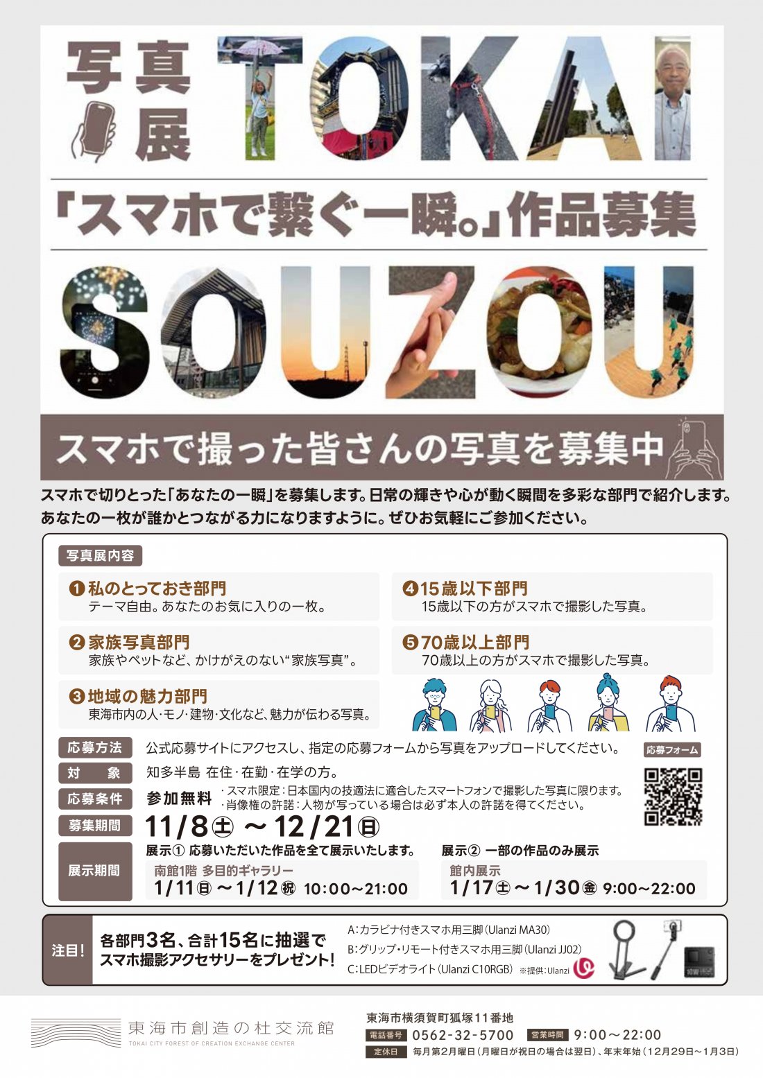 東海市創造の杜交流館で11月8日(土)から12月21(日)の期間、写真展「スマホで繋ぐ一瞬。」の作品募集をしています。