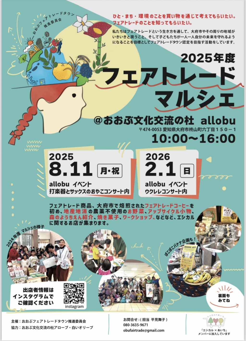 【お問い合わせ先】おおぶフェアトレードタウン推進委員会(担当:平見さん) ☎080-3635-9671