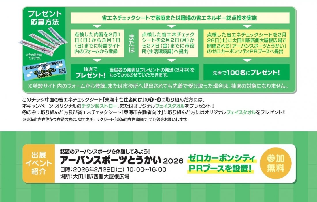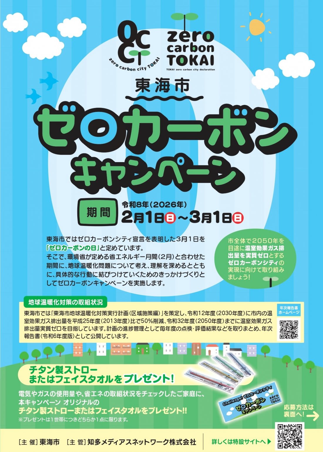 東海市ゼロカーボンキャンペーン (とうかいしゼロカーボンキャンペーン) 期間 2月1日(日)~3月1日(日) |