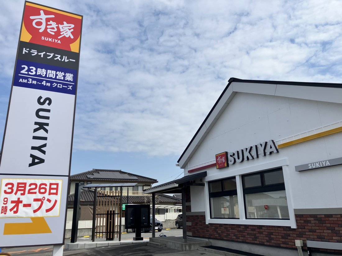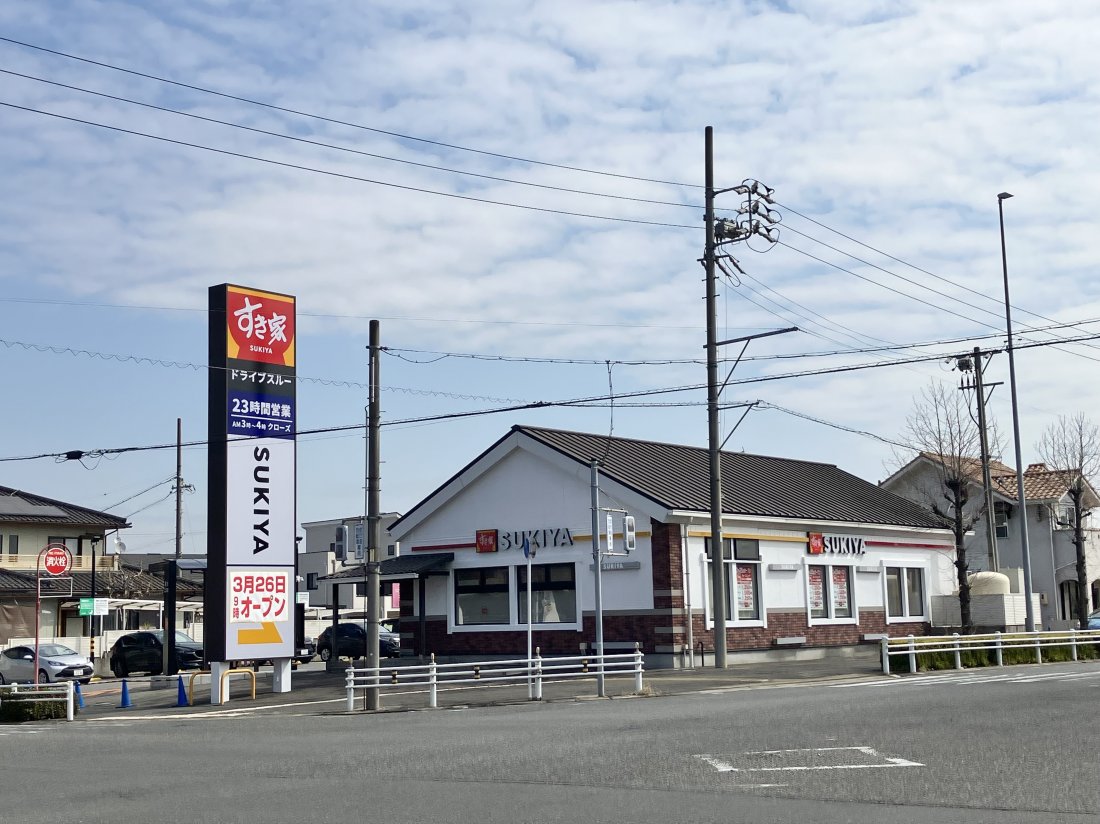 東海市荒尾町に「すき家 東海荒尾店」が3月26日(木)9:00にオープンしました。場所は「アピタ東海荒尾店」の近くで「瀬戸内製麺 東海荒尾店」の跡地です。