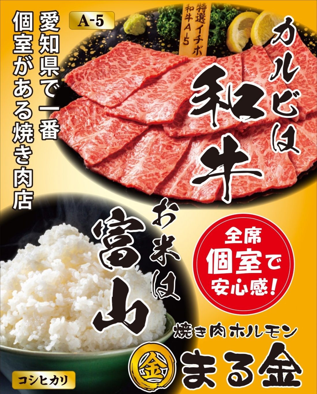 焼き肉 ホルモン まる金 東海店 (まるきん) 住所 東海市加木屋町中井道122-3 電話番号 0562-77-2286