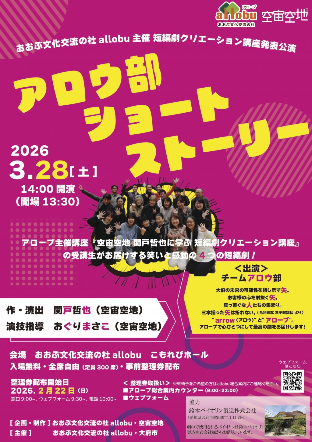 【公式サイト】https://allobu.jp/contents/?kouza=おおぶ文化交流の杜allobu主催-短編劇クリエーション
