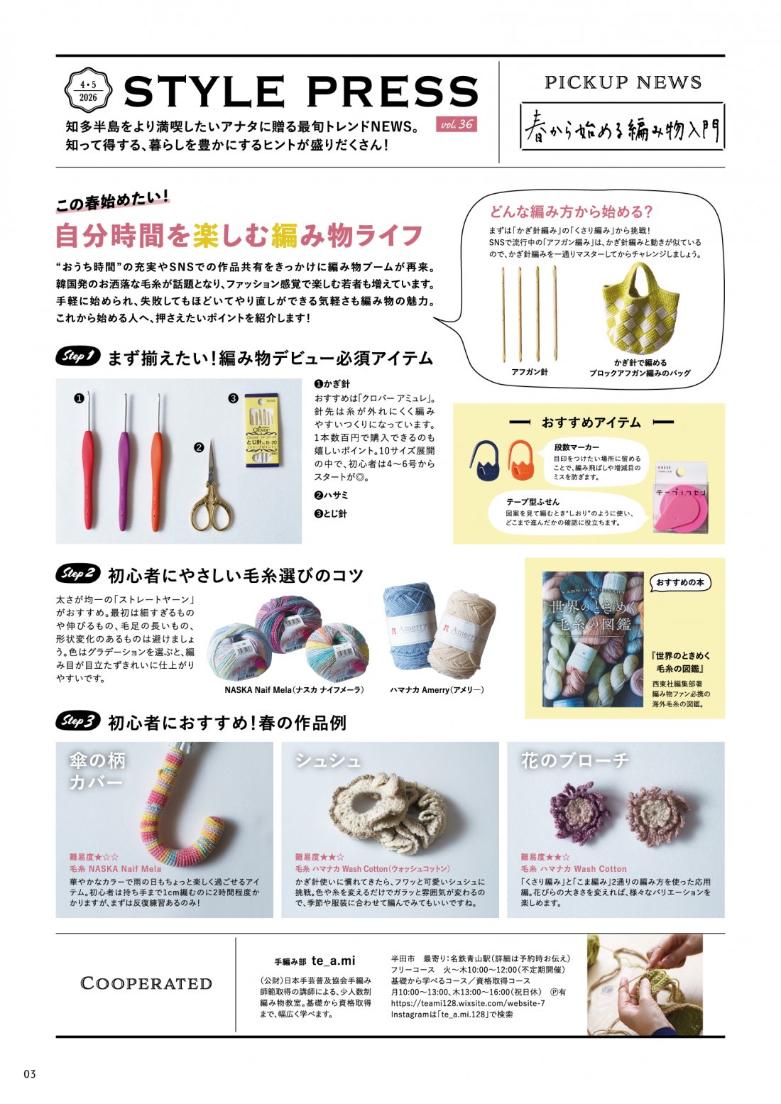 いかがでしたか。ボリューム満点!情報満載!の「ちたまるスタイル4・5月号」。ぜひ、知多半島での生活をより楽しむために活用してくださいね。