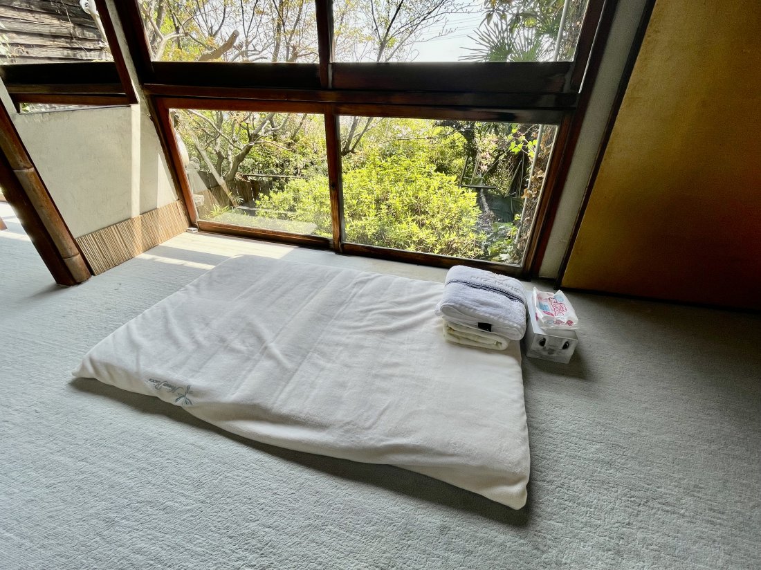 お昼寝やオムツ替えができる子ども用布団。バスタオルやおしりふきも完備されていました。