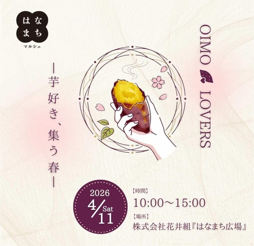 大府市の「はなまち広場」で、こだわりの焼き芋店が集まるイベント「OIMO LOVERS(おいも ラバーズ)」が4月11日(土)10:00~15:00に開催されます。
