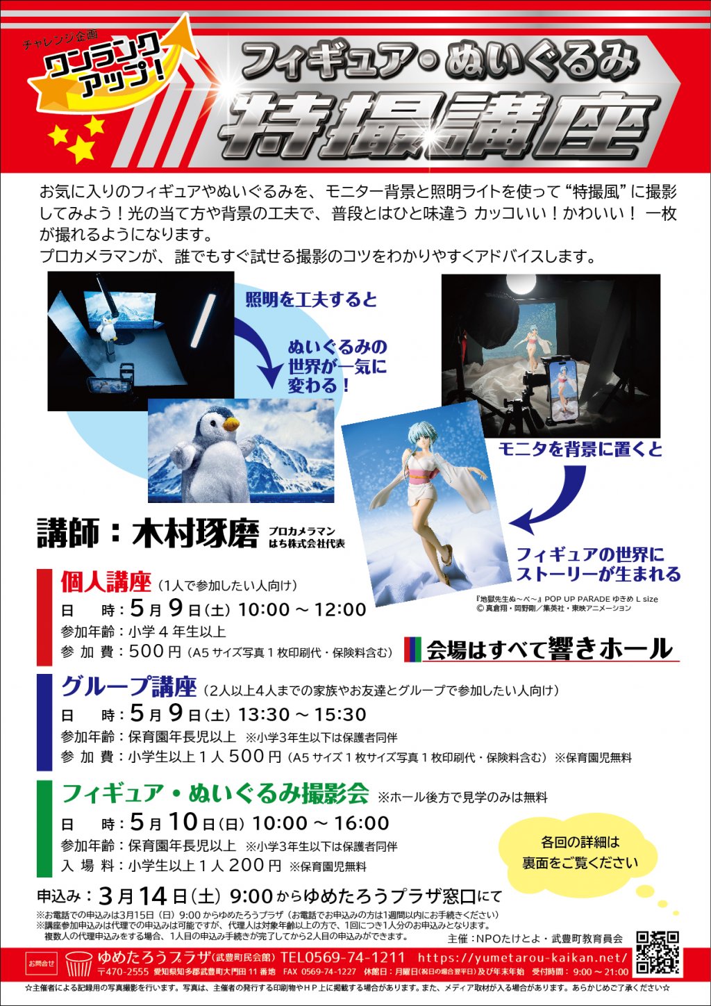 【料金】①講座500円 ※保育園児無料 ②撮影会200円 ※保育園児無料