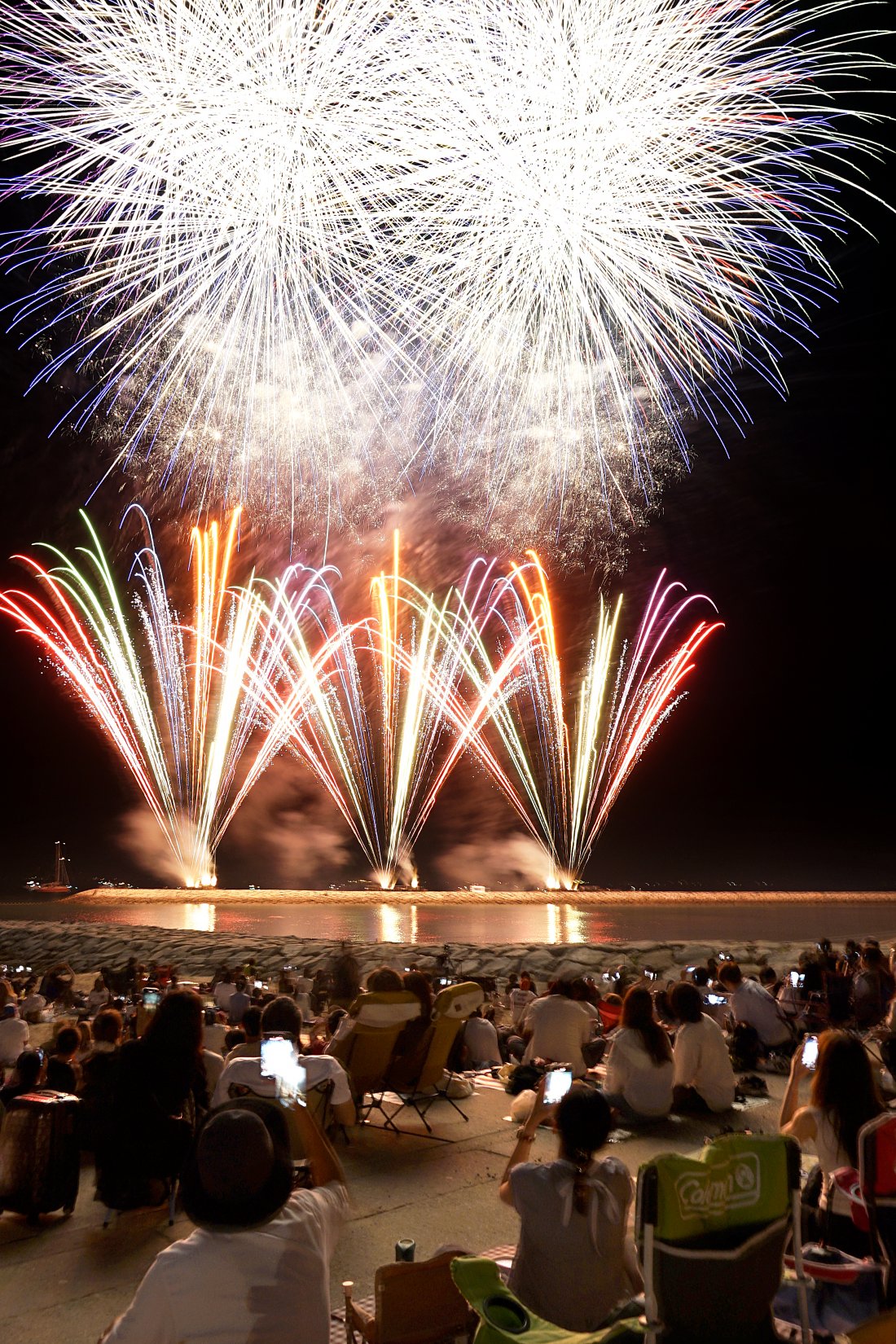 ぜひ、暖かい"海風"、心地よい"波の音"、夜空を彩る圧倒的な"花火"で至福の時間を過ごしてはいかがですか。