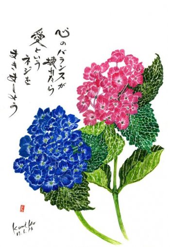 二色のアジサイ 花言葉「辛抱強い愛情」