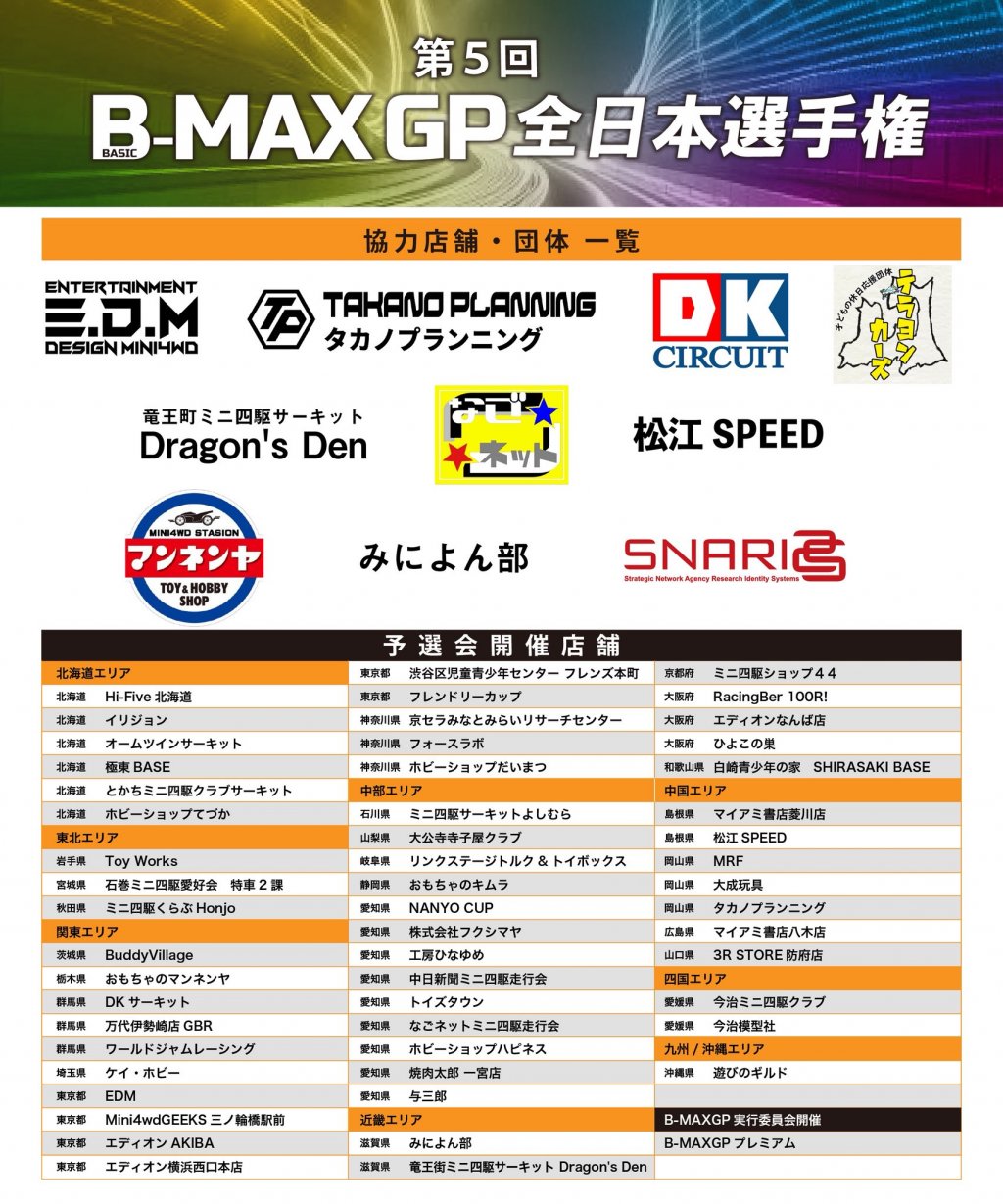 優勝者にB-MAXGP全日本選手権店舗の現地行きチケットを渡します 今年で5年目 なごネットミニ四駆走行会は4回目参加 パーツをぽん付けで複雑な可能をしない初心者でも参加しやすいルールで競います 初心者は。加工を最小限に抑えているため、純正のパーツを組み合わせるだけで、競技車を完成できる 上級者は、基本セッティングを見直して、挙動を確認 初心者から上級者まで気軽に参加できるレース形式です