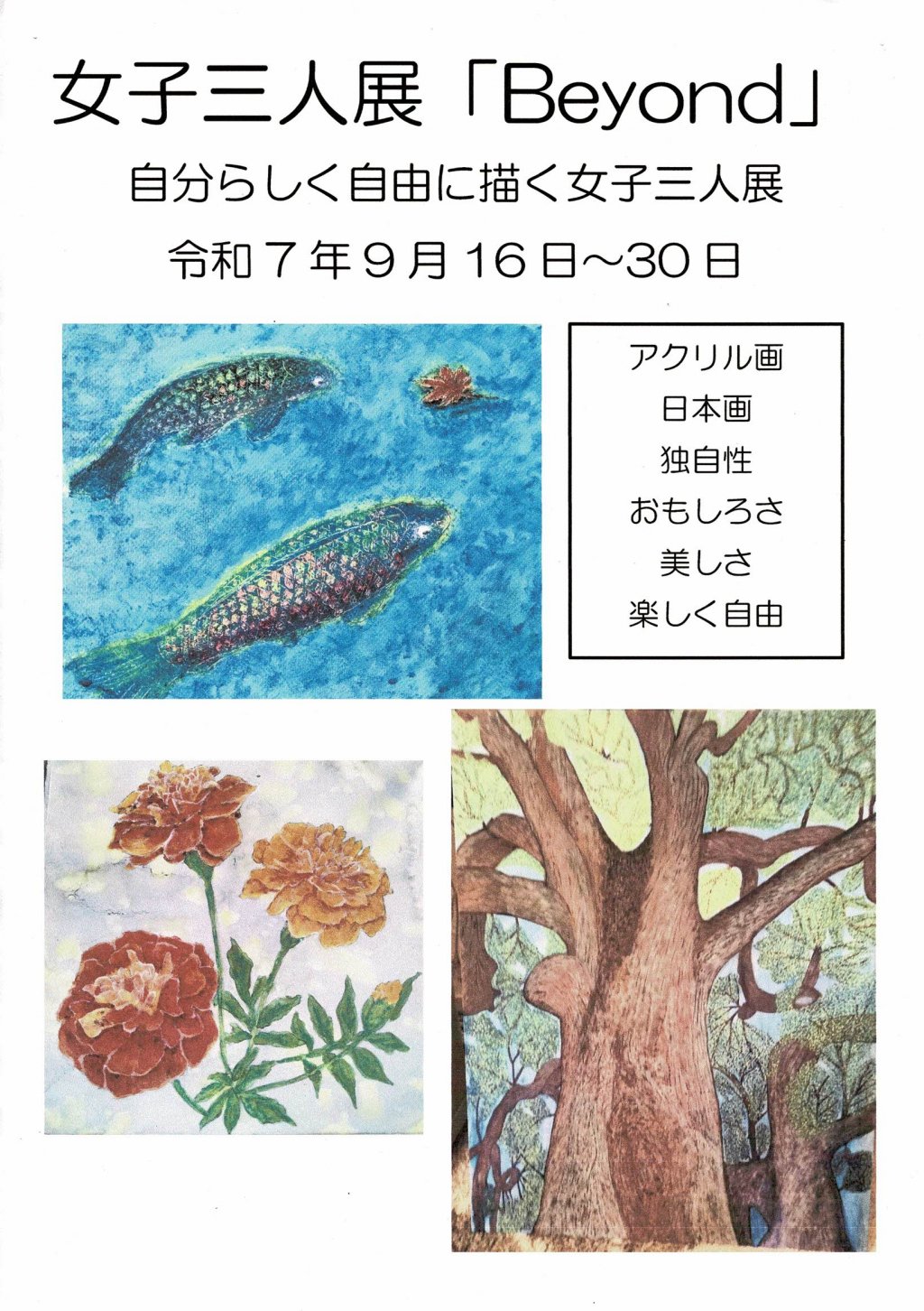 人生を楽しむのに、絵画を鑑賞するのもいい事ですよね プラザギャラリーでは、本日9月16日(火)より9月30日(火)まで 女子三人展「Beyond」を開催しています