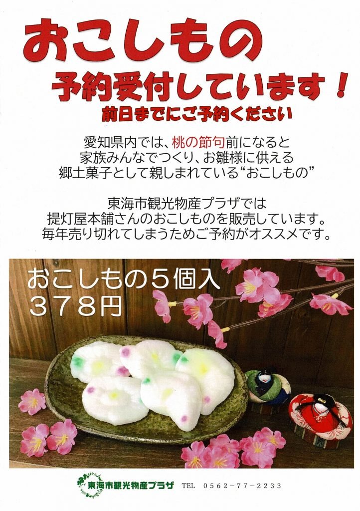 明日からいよいよ3月。日に日に春めいて気持ちが明るくなりますね(#^.^#) まもなく桃の節句になります プラザでは 地元の和菓子屋【提灯屋】さんが毎日日替わりの和菓子を納品してくれていますが、 この時期にはやっぱり『おこしもの』が大人気