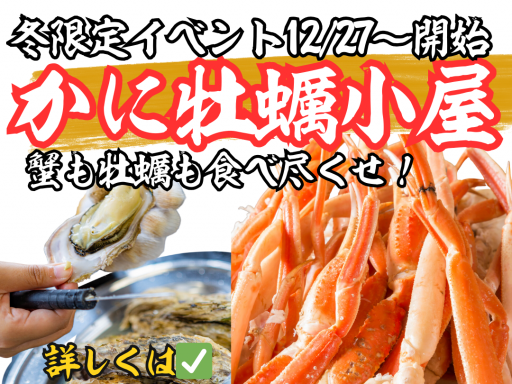 魚太郎本店に『かに牡蠣小屋』が誕生!年末年始に蟹も牡蠣も食べ尽くせ!!食べ放題プランが絶対お得!!