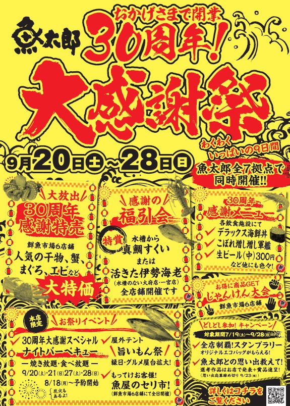 おかげさまで創業30周年 魚太郎30周年 大感謝祭