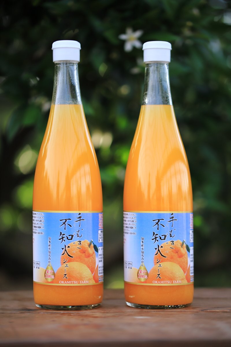 不知火みかんの外皮をひとつひとつ手でむき、果肉のみを丁寧に搾りました。不知火みかん本来の風味をお楽しみいただくため、パルプ分除去等の処理はしておりません。