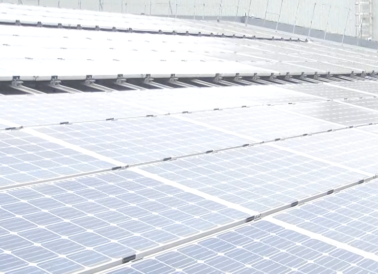 社屋の屋上に太陽光パネルを設置し