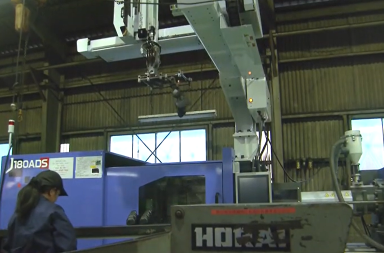 成形機を、消費電力の大幅に少ない電動機に全面切り替えしながら
